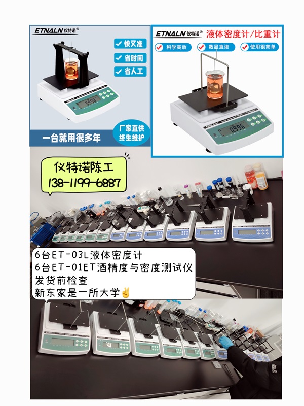 此次儀特諾的6臺ET-03L液體密度計和6臺ET-01ET酒精度與密度測試儀應用到湖南農業大學的實驗室,也感謝長沙的儀器商,儀特諾密度儀廠家,負責做好儀器質量,做好服務,與儀器商,與大學都是合作共贏的模式,讓用戶買的放心,用的舒心是我們一直以來努力的目標。