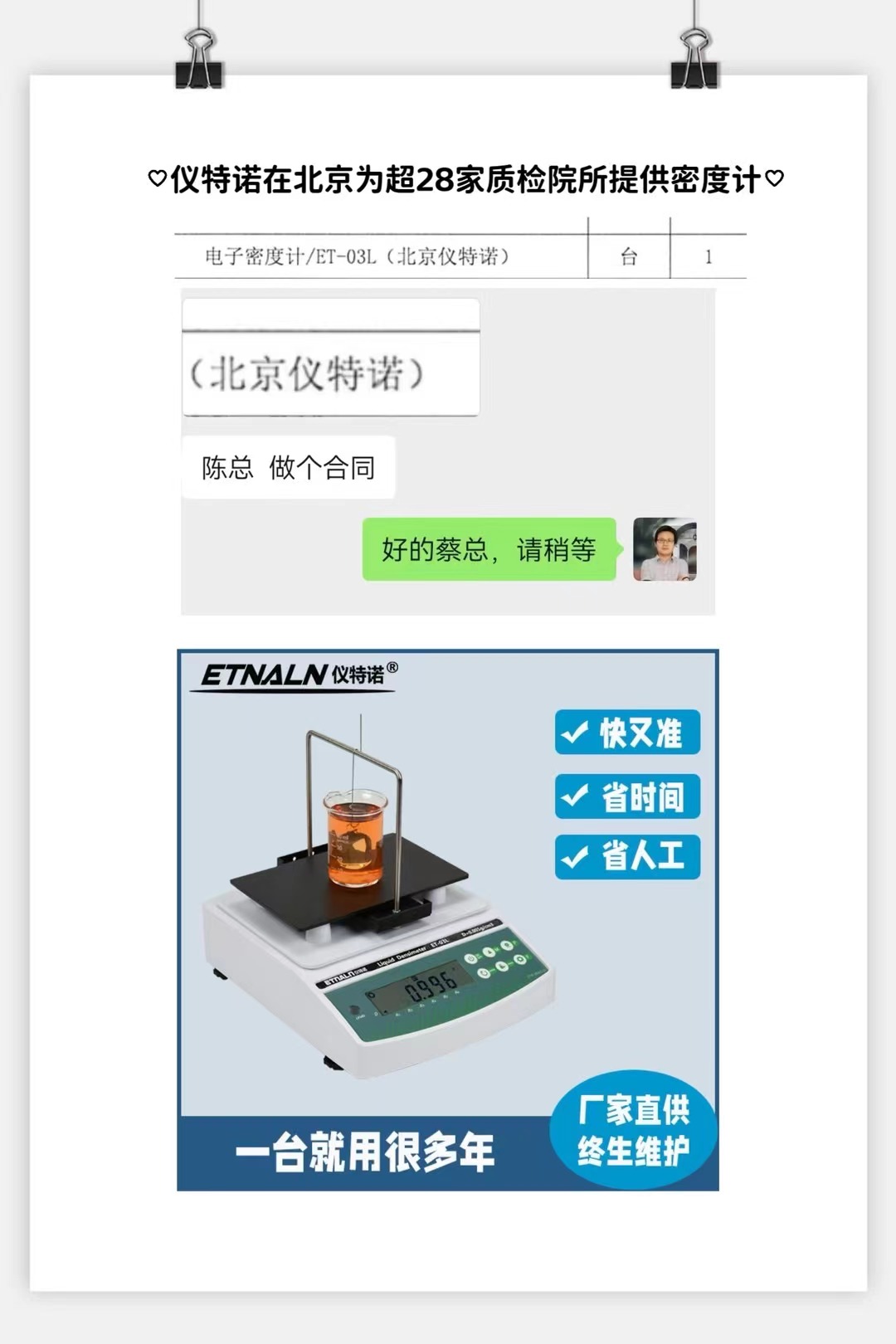 儀器商指定型號和品牌來采購電子密度計ET-03L。
