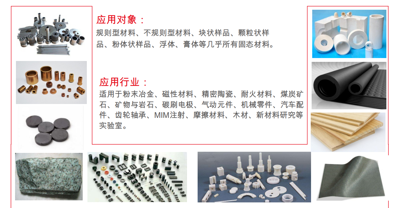 無論您是來自粉末冶金、陶瓷、建材還是科研院所,只要您的產(chǎn)品和多孔、吸水有關(guān),需要測量密度、孔隙率、含油率等一系列參數(shù),都可以使用儀特諾ET-320M、ET-120HM、ET-120S系列多功能密度儀,它讓復(fù)雜的檢測變得像“稱重”一樣簡單,幫您把寶貴的時間和精力,投入到更重要的研發(fā)和生產(chǎn)中去。