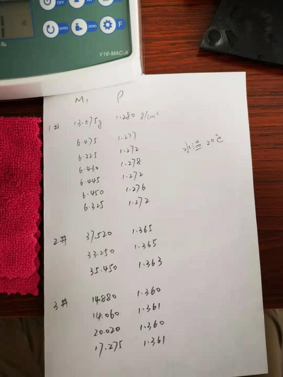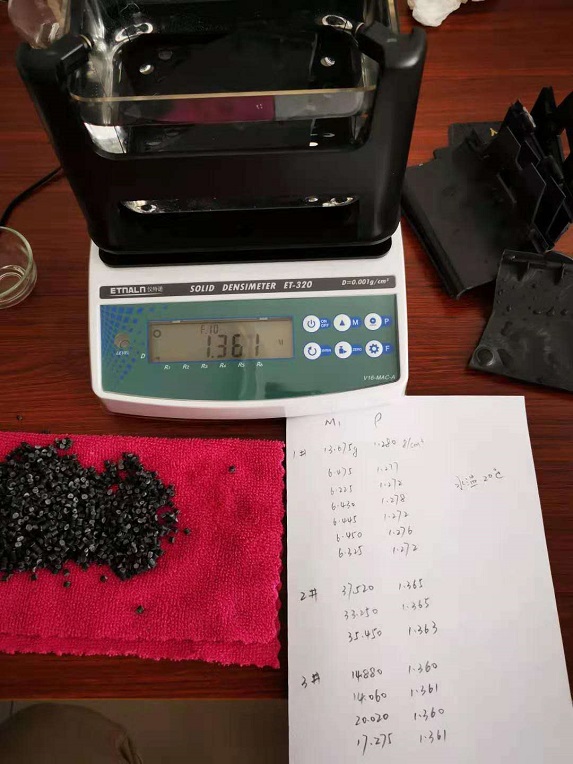 ET-320固體密度測試儀,測量客戶寄來的樣品后,測量顆粒,模具等產品的密度結果。