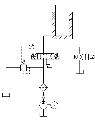 液壓原理如圖二所示,為負載適應型進油節流調速系統。